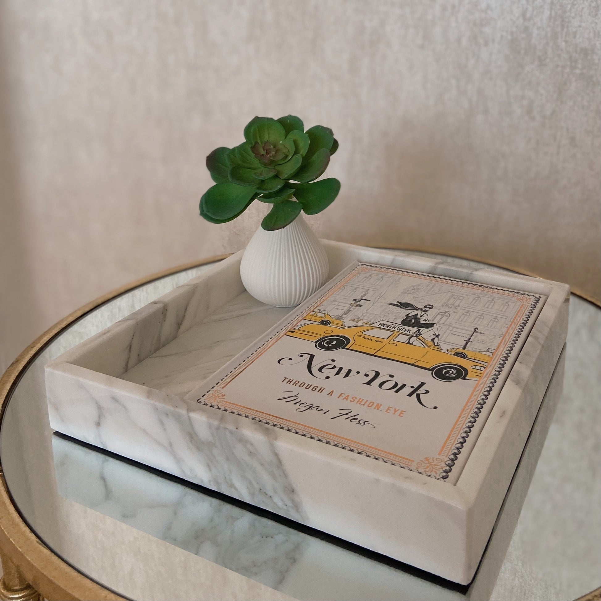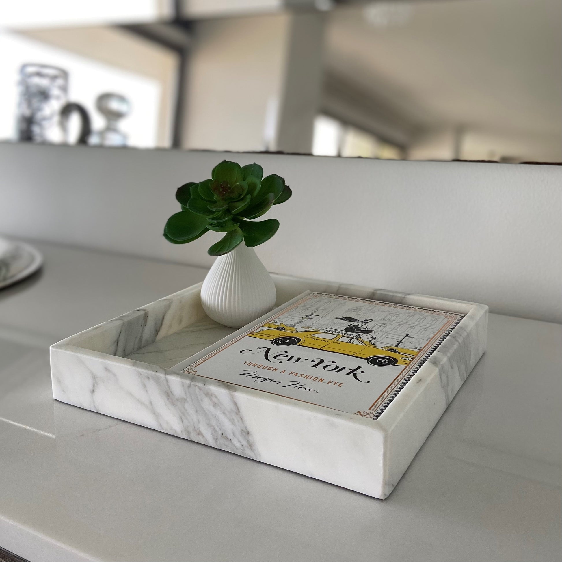 Bandeja cuadrada en mármol para perfumes, accesorios, adornos, entre otros